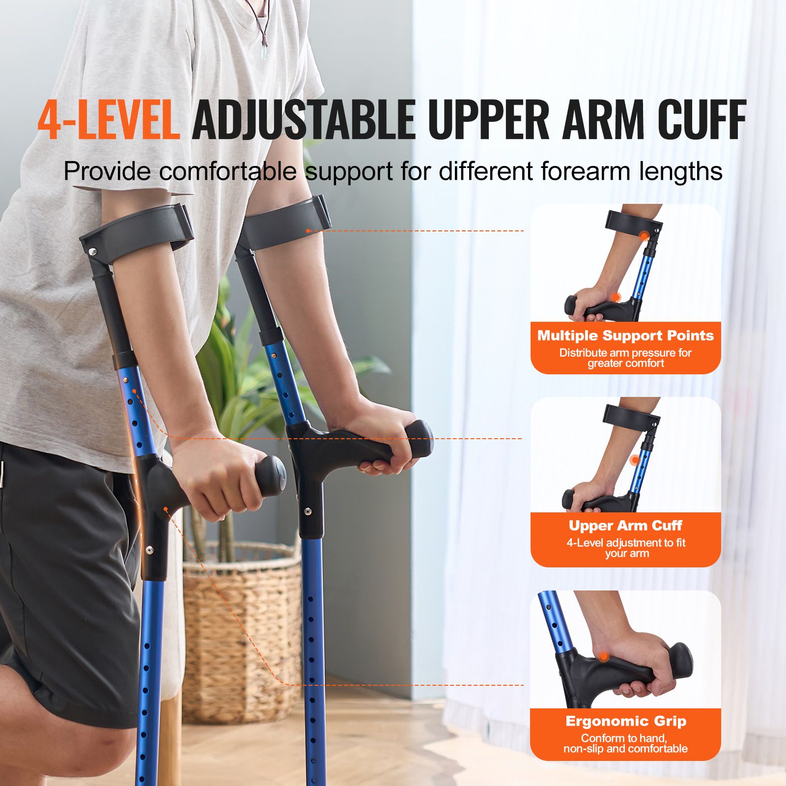 Featuring 11 adjustable height settings, this adjustable forearm crutches ensures a perfect fit for users ranging from 55.12" to 67" (140 - 170 cm). The 4-level adjustable upper arm cuff ensures a comfortable fit for different forearm lengths.